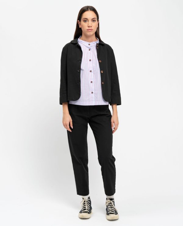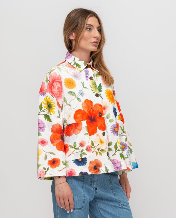 È realizzata in manila di cotone 100%, un voile di cotone leggero e traspirante, dalla mano morbidissima e setosa, ideale per la stagione primaverile ed estiva. Un capo fresco e raffinato, pensato per accompagnare il quotidiano con naturalezza.