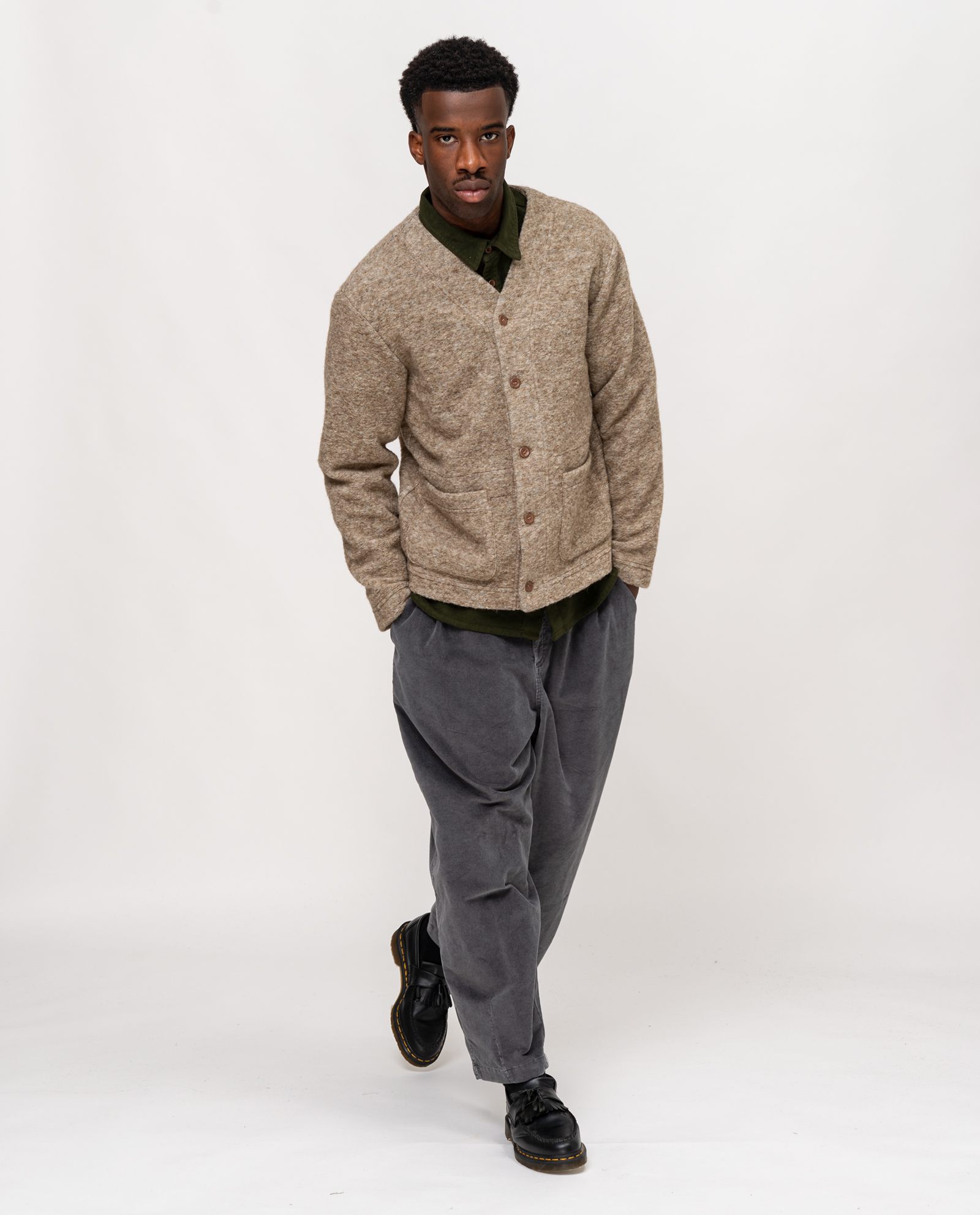 Cardigan in lanacotta con due tasche ampie frontali.