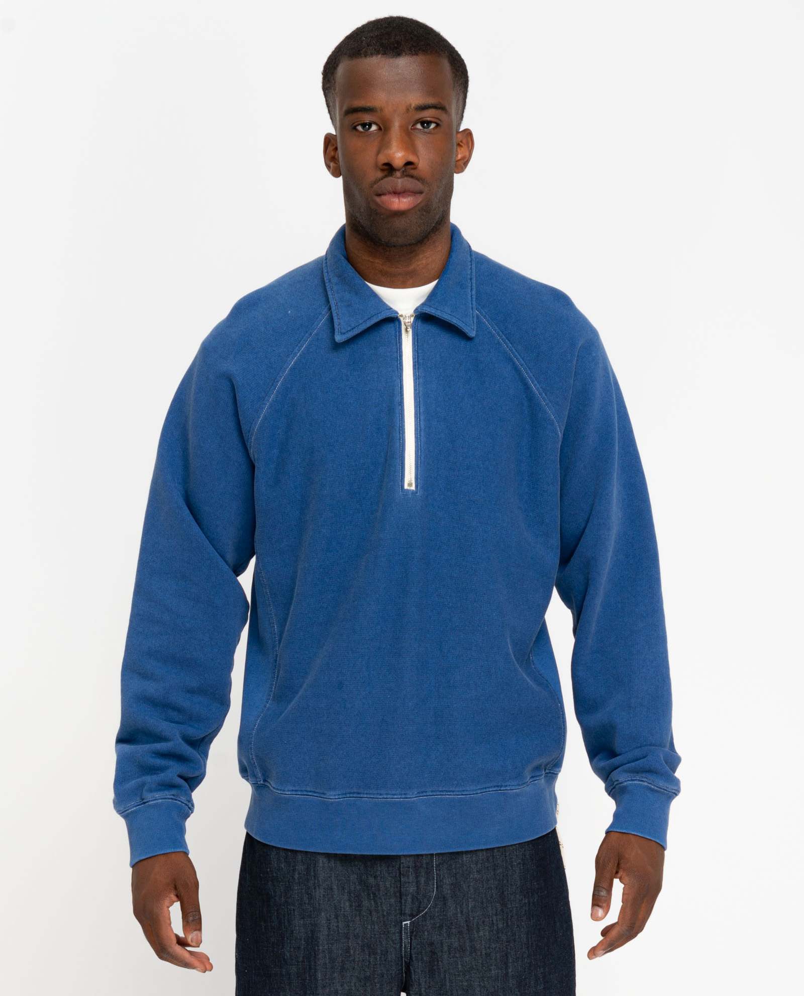 Felpa placcata spalla raglan, collo a camicia con zip centrale, stampa madson sul retro, fianchetti, particolare sulla costina del fondo della coulisse