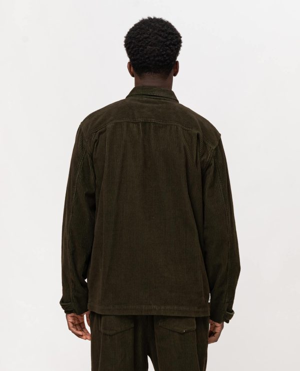 È realizzata con due ampi tasconi a pattina sul petto e sul retro elastico che stringe leggermente il fondo.