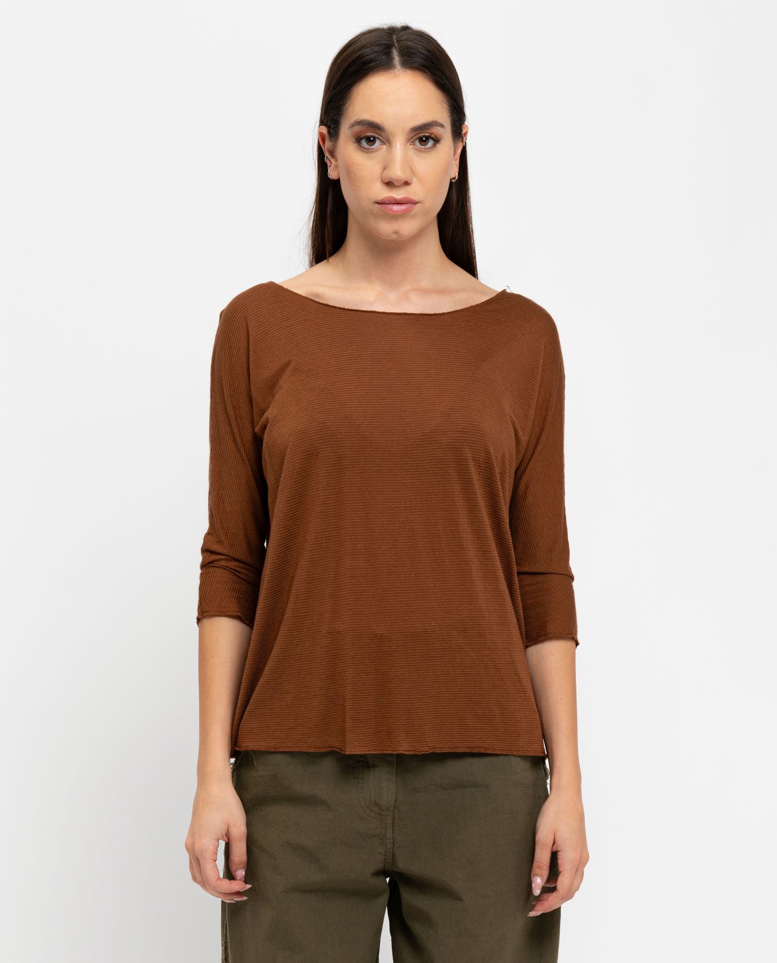 Questa maglia manica tre quarti e collo ampio è realizzata in leggero jersey lino rigato. Caratterizzata da una vestibilità morbida, è perfetta per le giornate primaverili ed estive o come base per styling più creativi.