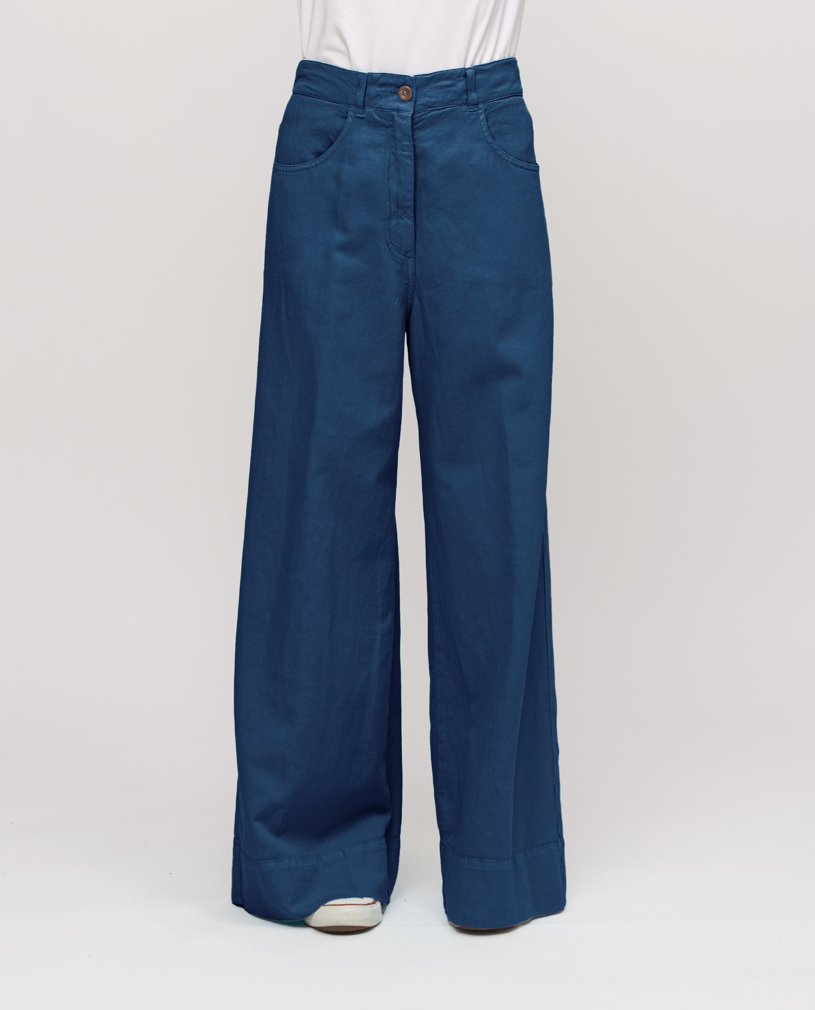 Realizzato in Linard, un tessuto naturale e performante composto da cotone, lino e lyocell, unisce freschezza, morbidezza e resistenza. La vita regolare e la gamba ampia accompagnano il corpo con naturalezza, rendendolo un capo versatile, adatto sia all’uso quotidiano che a contesti più curati.